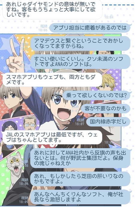 あ、私カスハラとかいわれませんから。大株主なので当たり前の権利行使をしているだけです。下民警察とかはゲスの勘ぐりをしないように。なんならANAに当局正規ルートでといあわせていただいてもかまいませんよ。