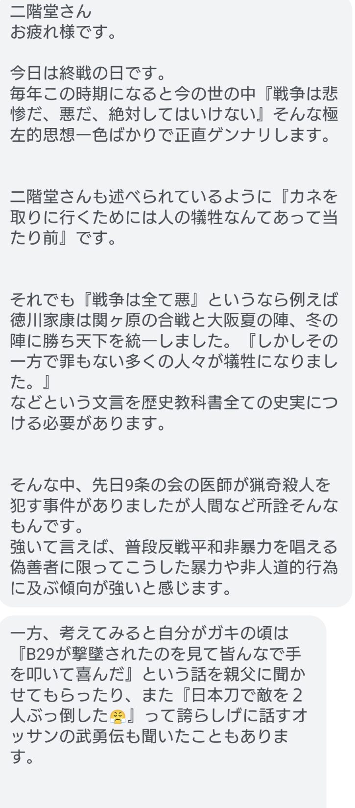 HOME > 貴様ら!俺の言うことを聞いてみませんか? >すべての戦争が悪なら、織田も豊臣も德川も天皇も戦犯だろ。 2023/08/19 01:10 ごもっともなんだよ。人は死ぬから価値がある。明日死ぬかもしれないから全力で生きれる。無限に生きれるならみんななんもしねえよ。